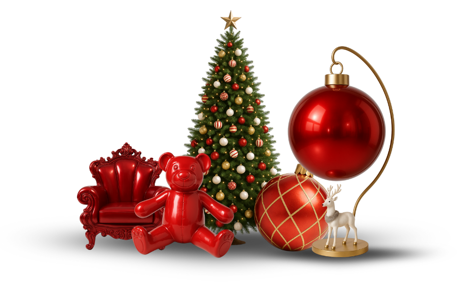 Somos fabricantes especializados en esculturas gigantes de temporada, diseñadas para transformar espacios interiores y exteriores con identidad, impacto visual y una estética escenográfica.